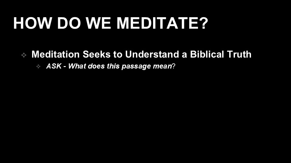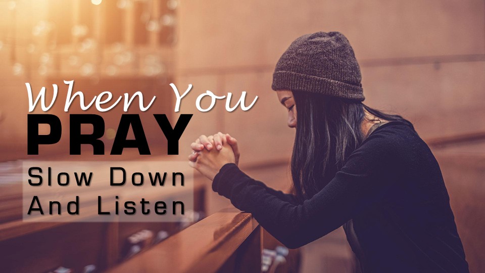 In our current series we are moving through the Lord’s Prayer and while it doesn’t explicitly tell us to slow down and listen to God, the context of Luke’s version is Jesus off in a quiet place praying when the disciples asked him to teach them to pray. The example of Jesus in prayer is to be quiet, slow down and listen to the father. This Sunday we will see that Christian meditation as an effective element of prayer. Christian meditation is vastly different from other forms of meditation as seen in the religion of yoga where meditation is the emptying of the mind. Christian meditation is replacing our troubling brain activity with the knowledge of God as revealed in His word. Christian meditation requires being informed with God’s Word first and as we mull over what we read, we can process our circumstances in a spiritually healthy way. Christian meditation requires some level of solitude to block out the noise of the world and to hear the voice of God. There is a place for praying as we move throughout the day, but there is a need to hit the pause button, slow down so we can listen to God in prayer. Prayer is a two-way conversation between us and God. Unfortunately, many times we dominate the conversation, not giving God a chance to speak and be heard. When you pray, slow down and listen to God.
